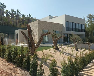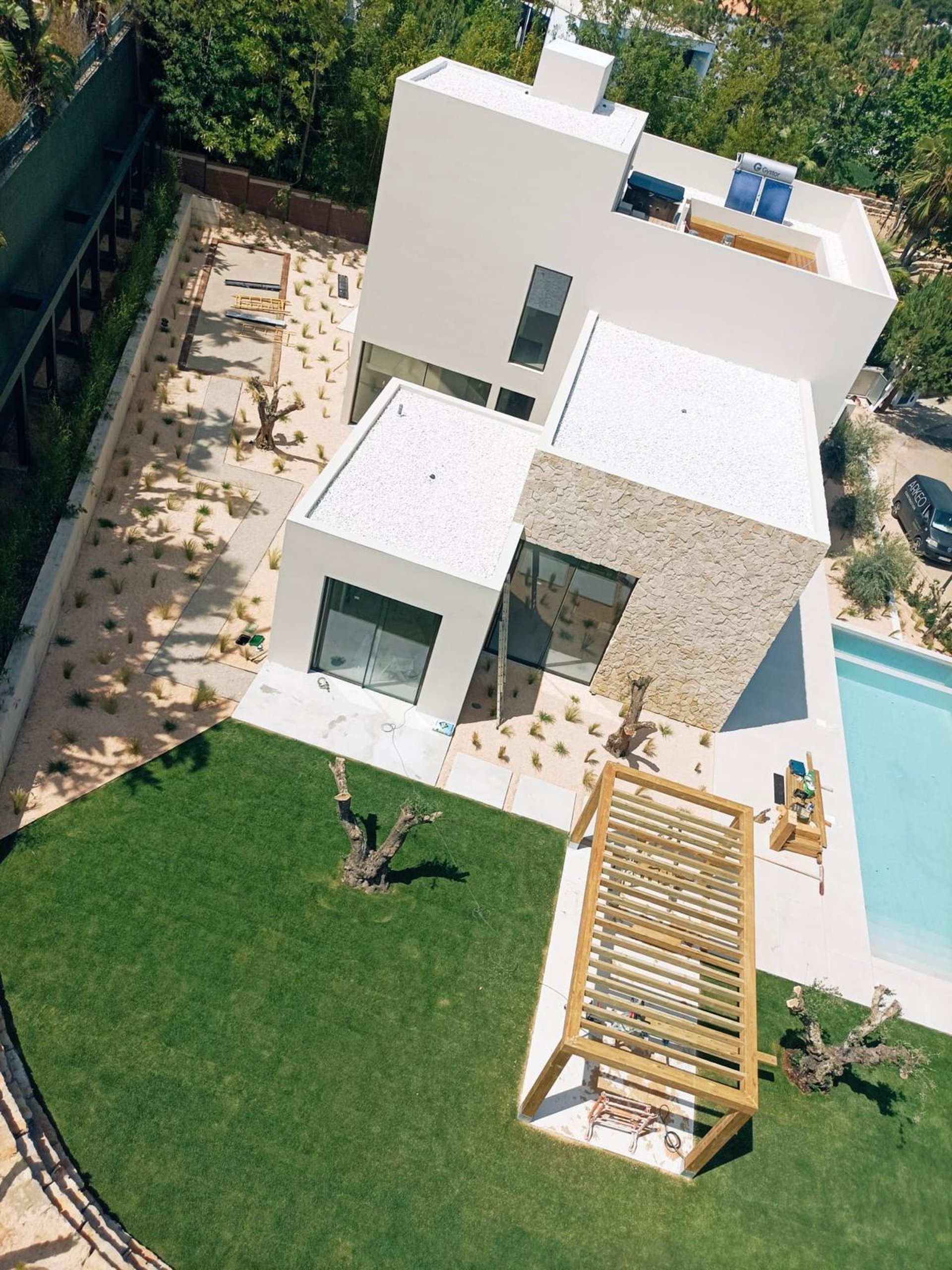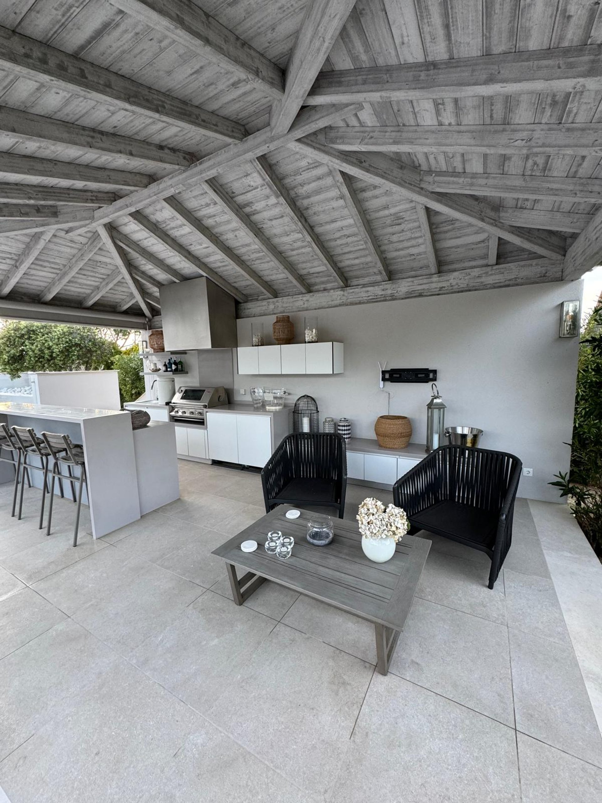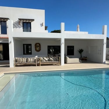 A key highlight is the living area, where a two 2,5-meter sliding glass panel opens the space , creating a seamless indoor-outdoor connection and a full 5-meter open view. The swimming pool was extended to accommodate an electric cover and upgraded with a heated system, allowing year-round enjoyment.